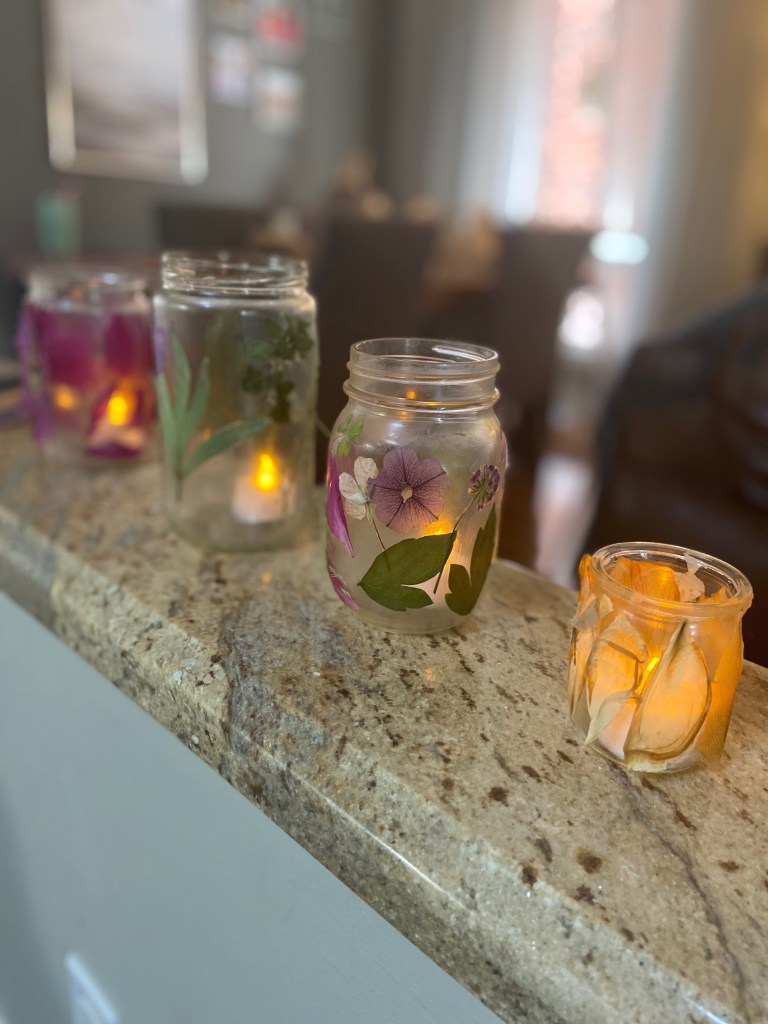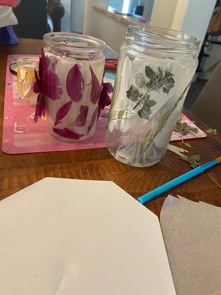 Paint over your design with mod podge to seal. It is okay to have flowers that are sticking out of the jar; these do not need to be sealed.