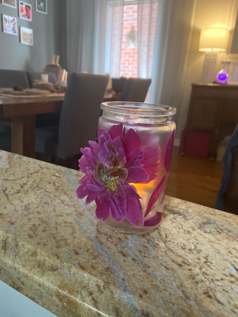 Place your battery powered tea light in the jar and admire. This makes a great night light!