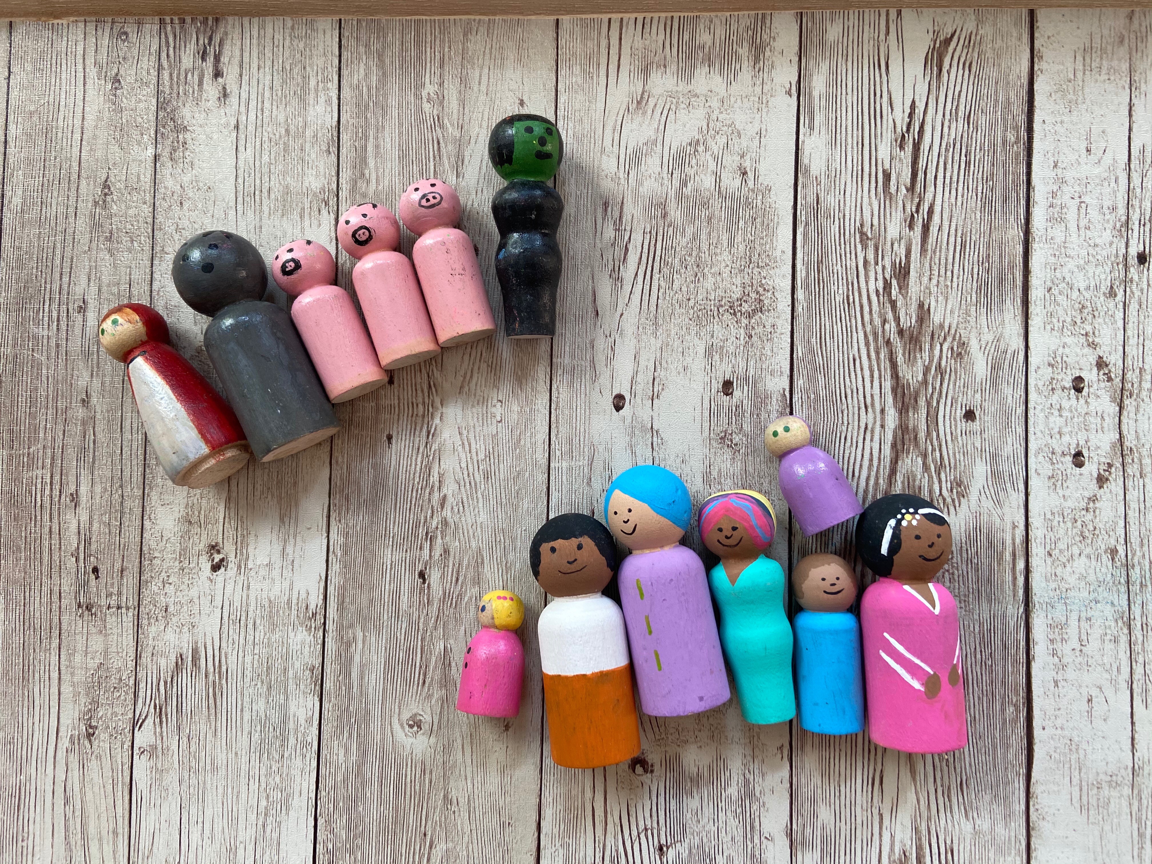 - Wooden peg dolls