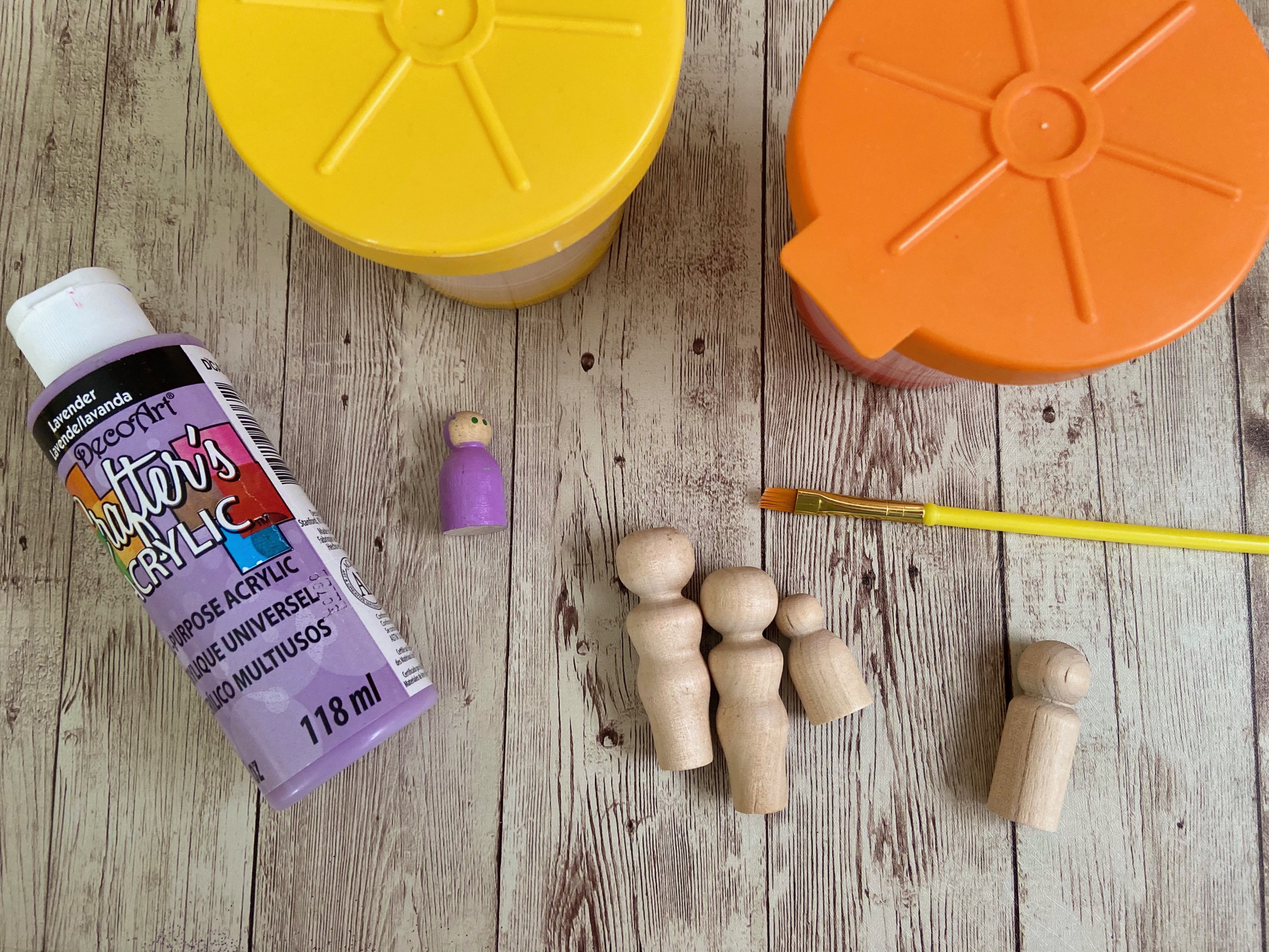 - Paint the wooden peg dolls with the design and features of your choosing.