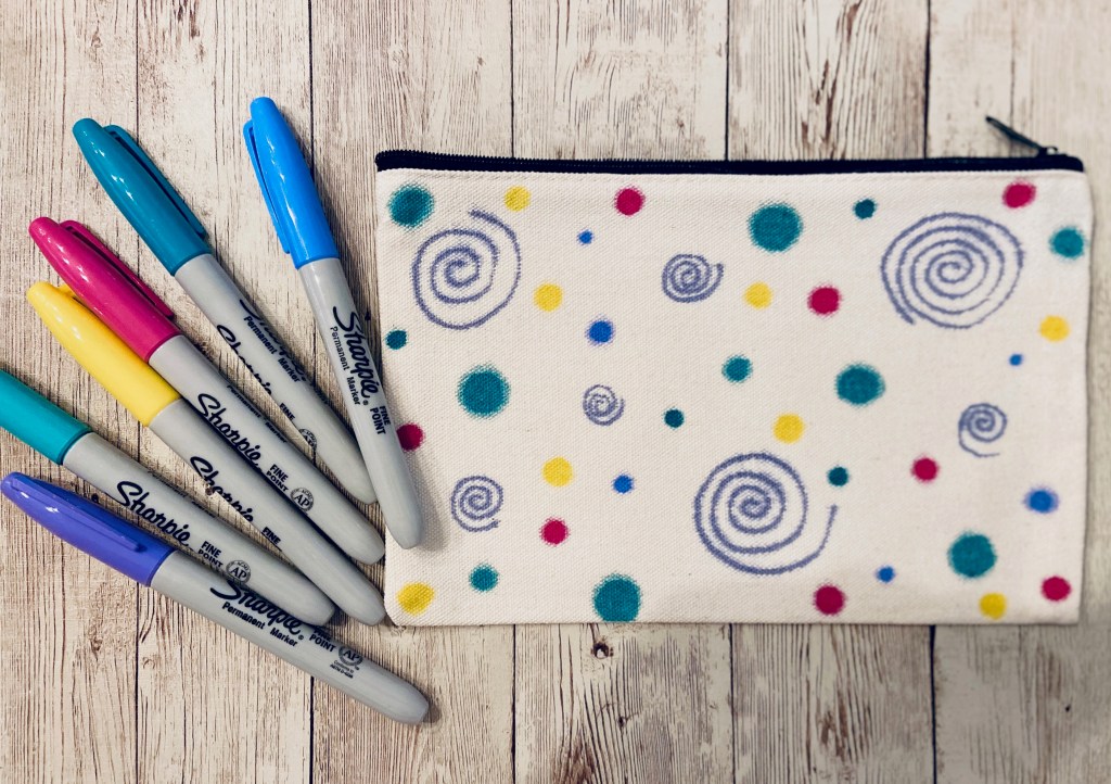 - Draw and colour your pouch with sharpie brand permanent markers.