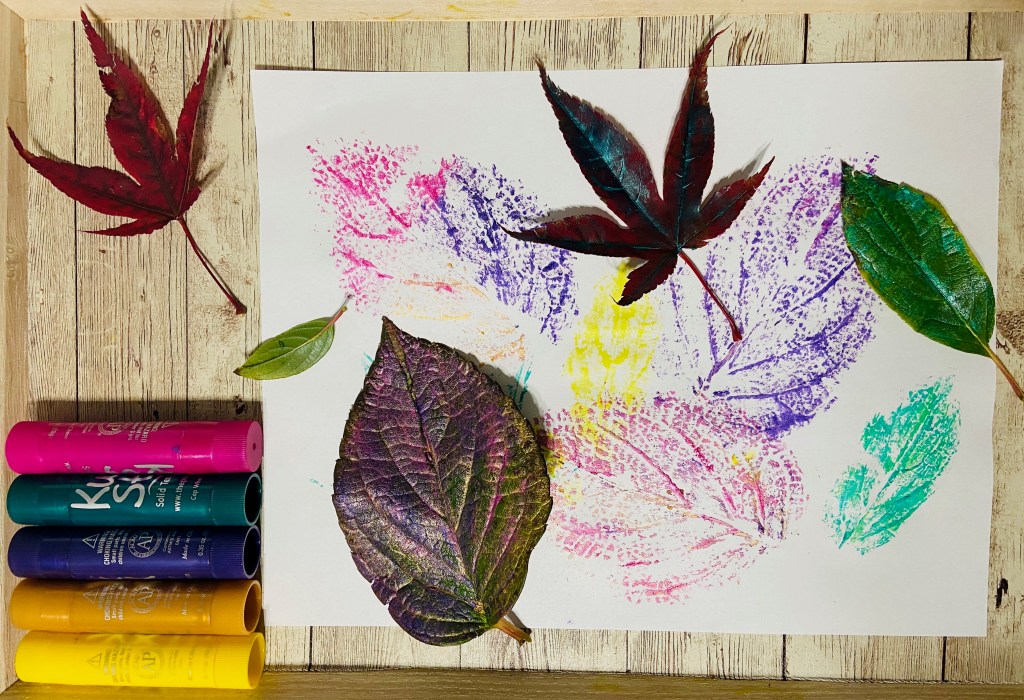 - Use paint or paint sticks to paint a leaf.
