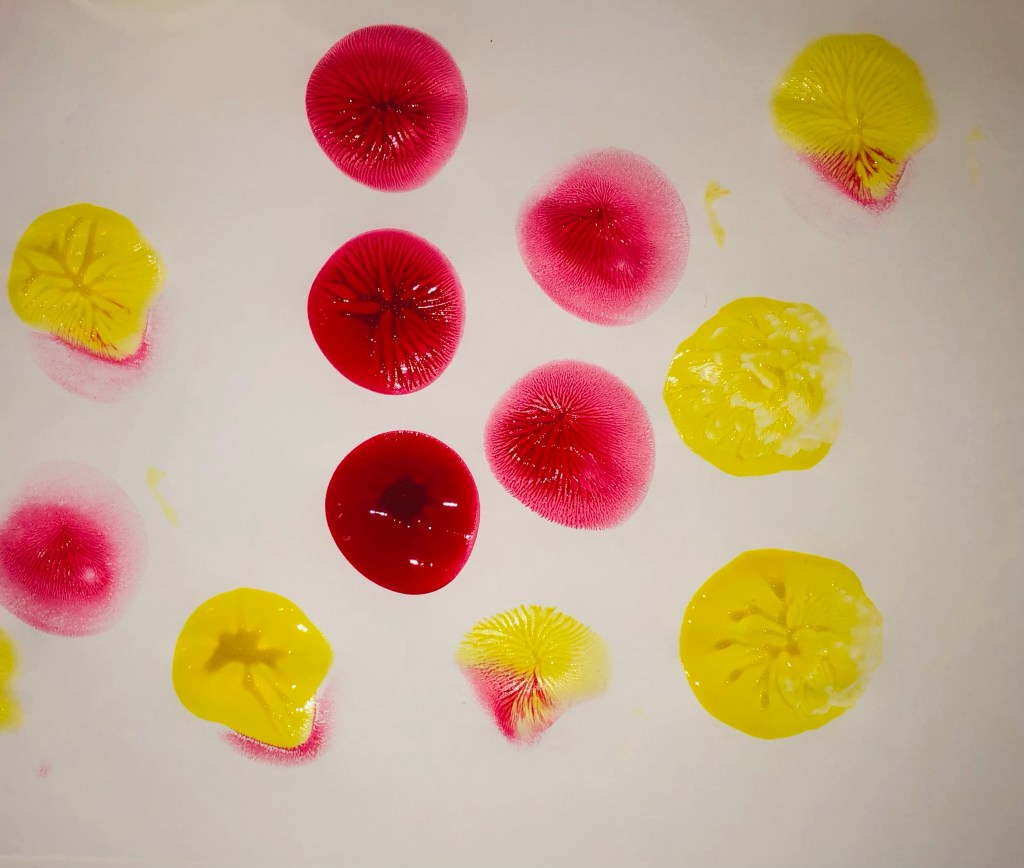 Pour paint onto a plastic plate. Repeat this step for as many colours as you would like.