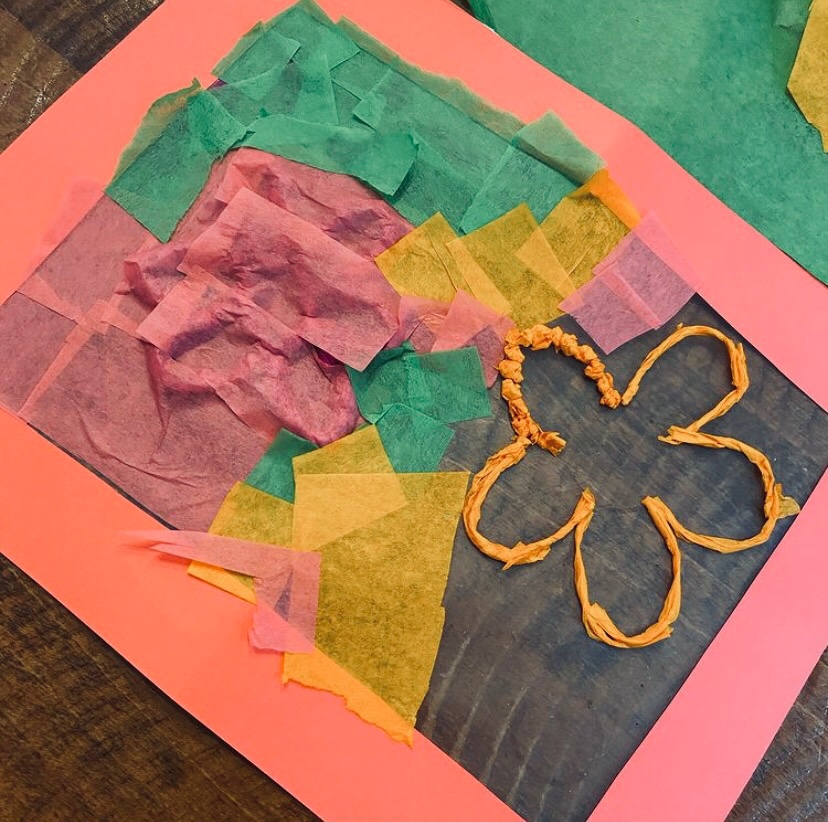 - Crumple, tear, cut or fold pieces of tissue paper. Remember, there is no wrong way!