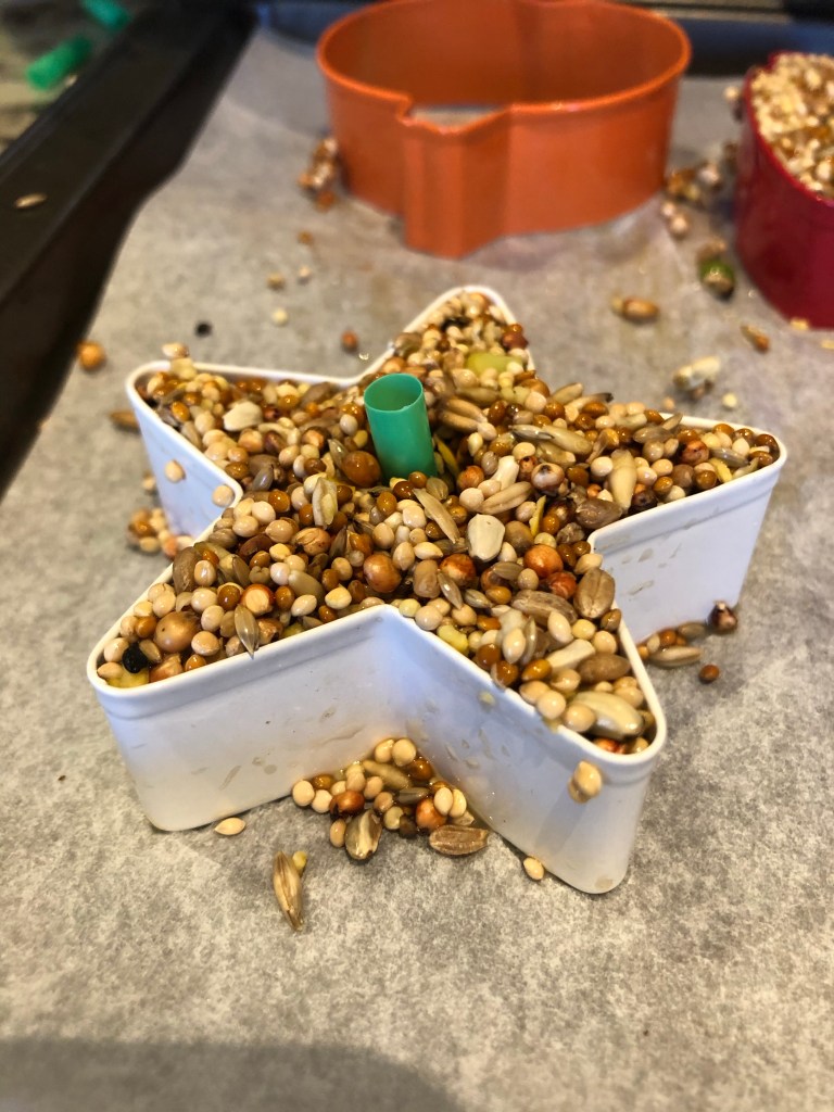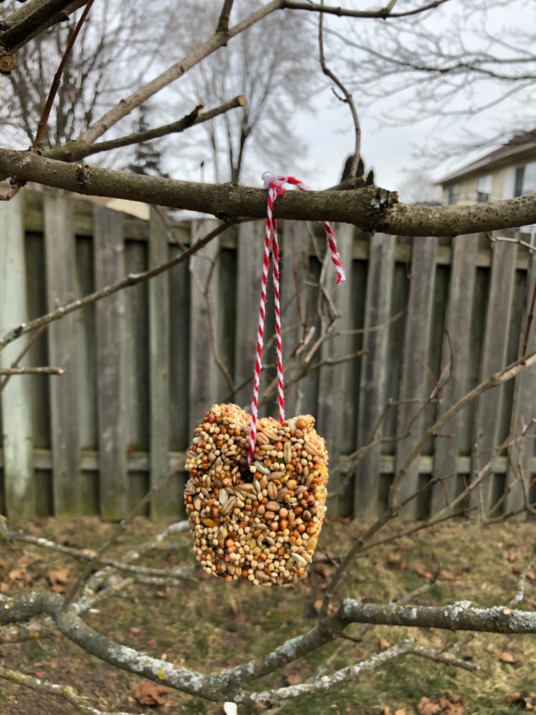- Your ornament is now ready to be hung outside. Enjoy observing the birds eat their treat.