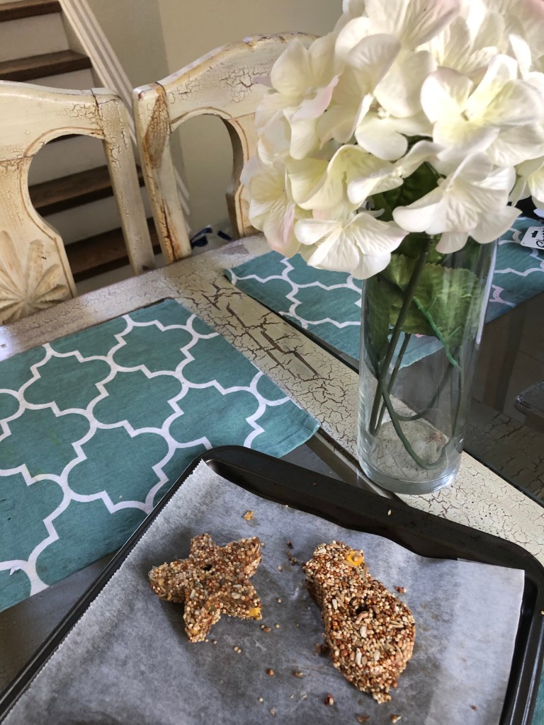 - Allow the birdseed cookies to dry for 3-5 hours, flipping them half way though.