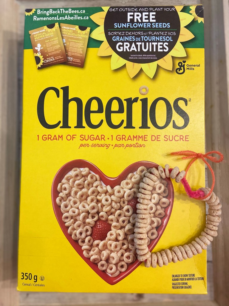 - Your Cheerio Bird Feeder is now ready to be hung outside. Children are encouraged to be creative and create any design that they choose.