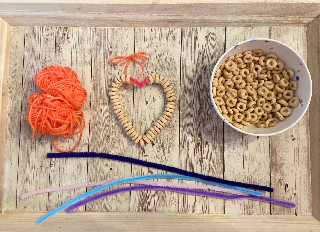 - Thread the Cheerios onto pipe cleaner and twist ends together.